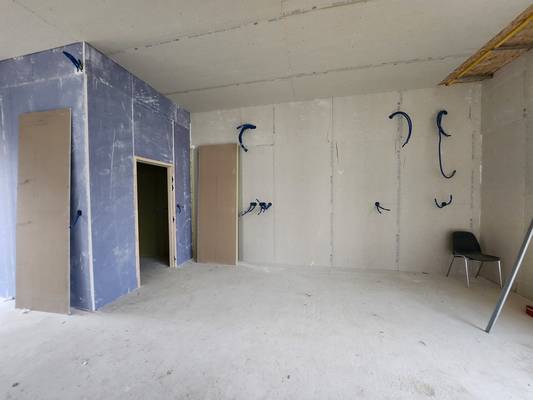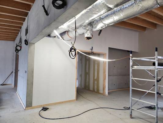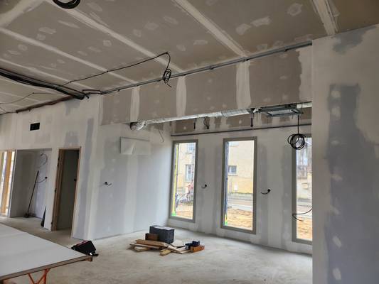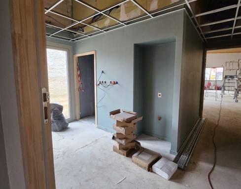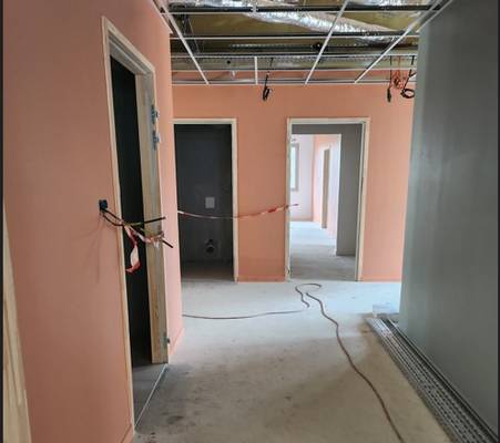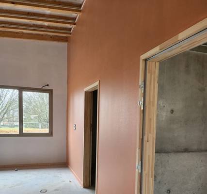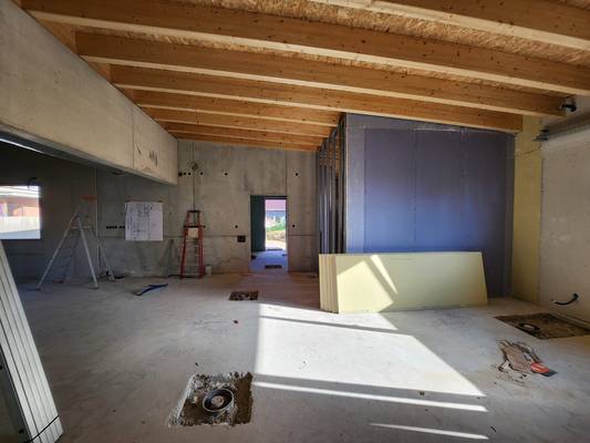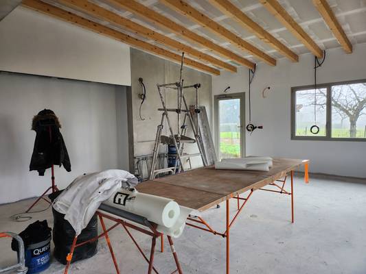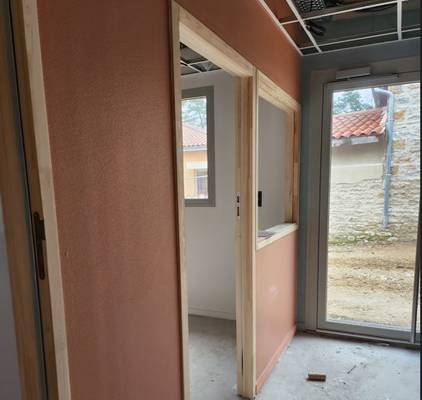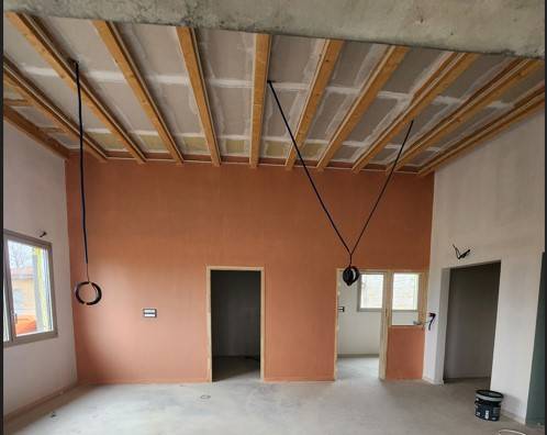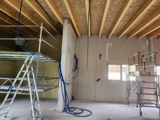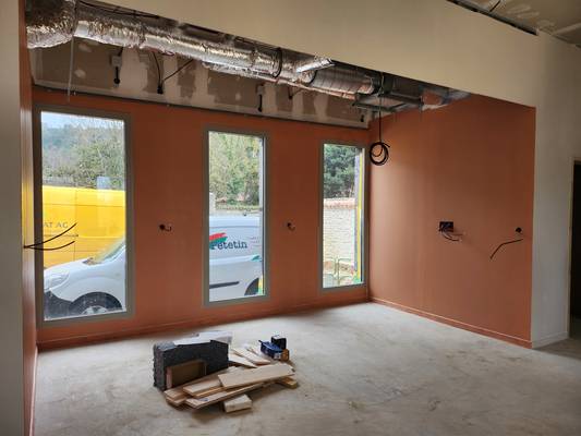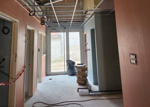 Les murs sont colorés, les sols sont en cours et les plafonds à terminer.