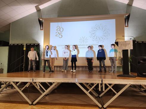 Après l'accueil des habitants par le 1er adjoint pour les voeux, le Conseil Municipal des Enfants a proposé à la population un quizz de culture générale sur Paris et la politique, en rapport avec leur journée à Paris au début de l'été dernier.