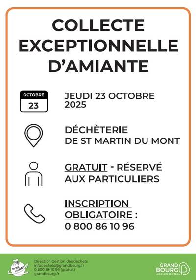 La Direction de la gestion des déchets de Grand Bourg Agglo organise une collecte d’amiante, réservée aux particuliers, le jeudi 23 octobre