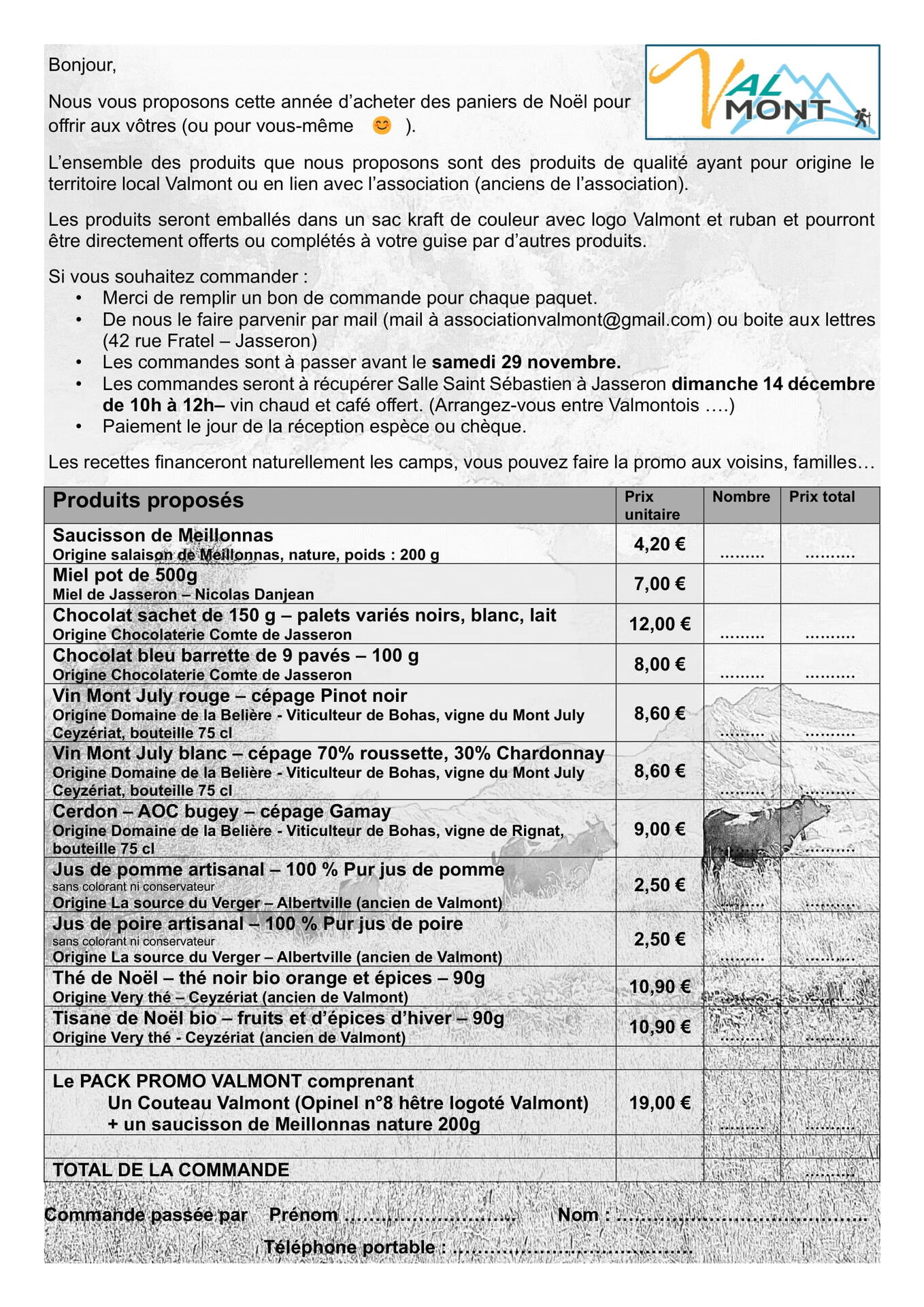 L'association Valmont, qui emmène des jeunes Revermontois en camps en montagne depuis plusieurs décennies, propose cette année des Paniers de Noël composés de produits locaux.